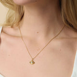 • Effortlessly protective, this evil eye charm necklace is your everyday talisman. Plated in 14k gold with a luminous opal center, it offers subtle shine and timeless symbolism. Wear it alone or layered with your favorite chains.