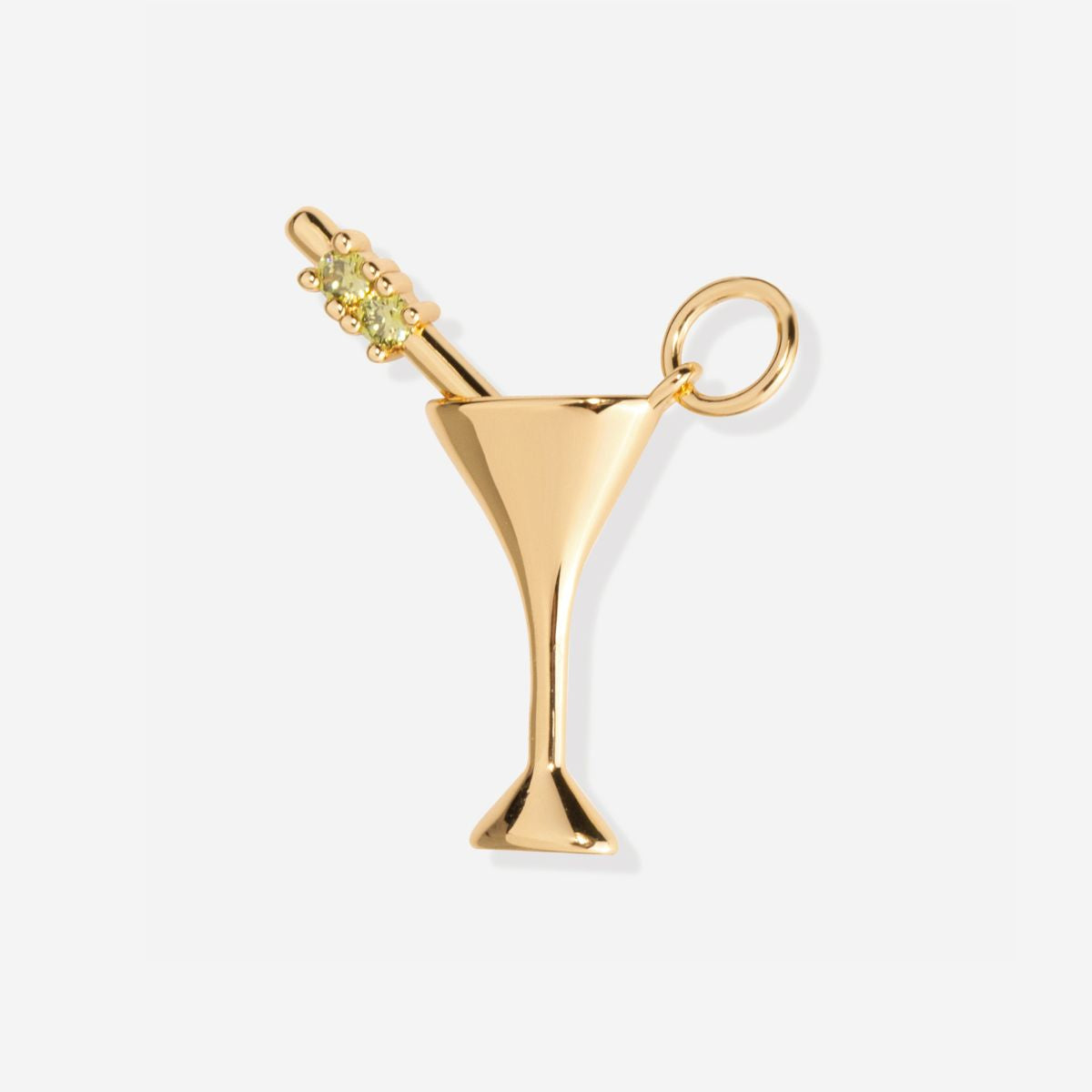 Cheers to sparkle. The Martini Charm adds a playful twist to your everyday look, featuring a sleek gold silhouette and a gem-studded olive. Perfect for celebrating life’s little wins—or just happy hour.