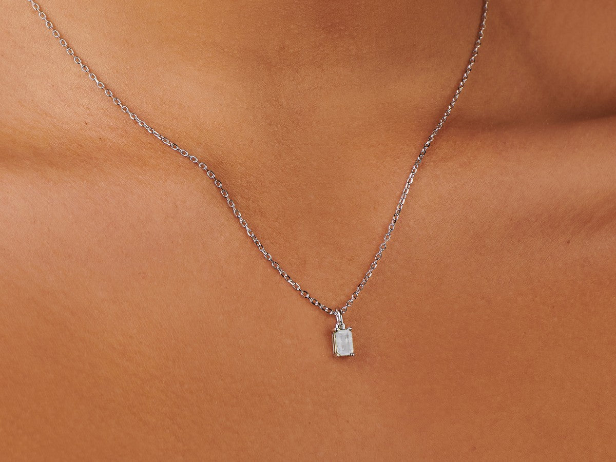 - A dainty stone and delicate metallic chain are combined to create this Silver Pendant Necklace in moonstone, your new favorite wear-anywhere accessory.